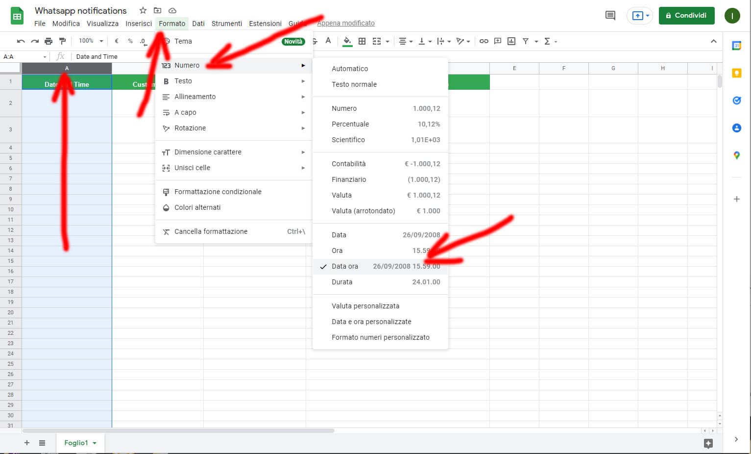 • Please note that the "Day and Time" cell must be formatted as | day/month/year – hour/minute | set the time to send the notification