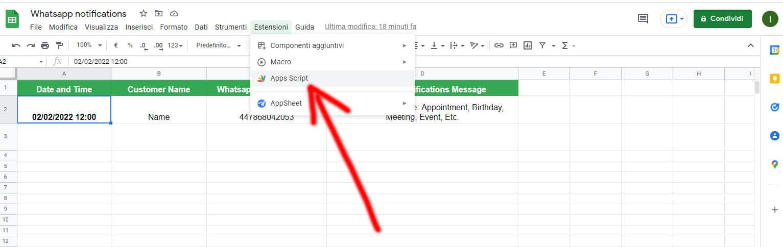 • If you have everything set up as described and the date and time in the Google Sheet are the same as the current time, you will see your notification sent from your phone's WhatsApp.