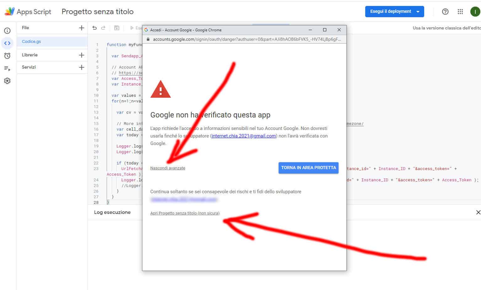 • Make sure you have replaced the Access_Token and Instance_ID in your Google script