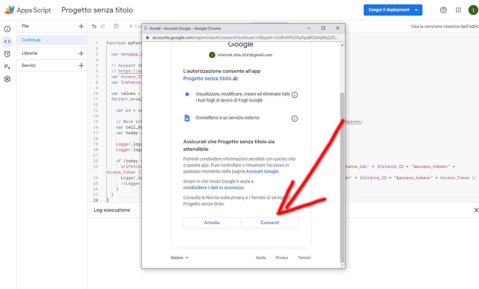 • After saving, press the Run button and wait for the authorization windows to appear.